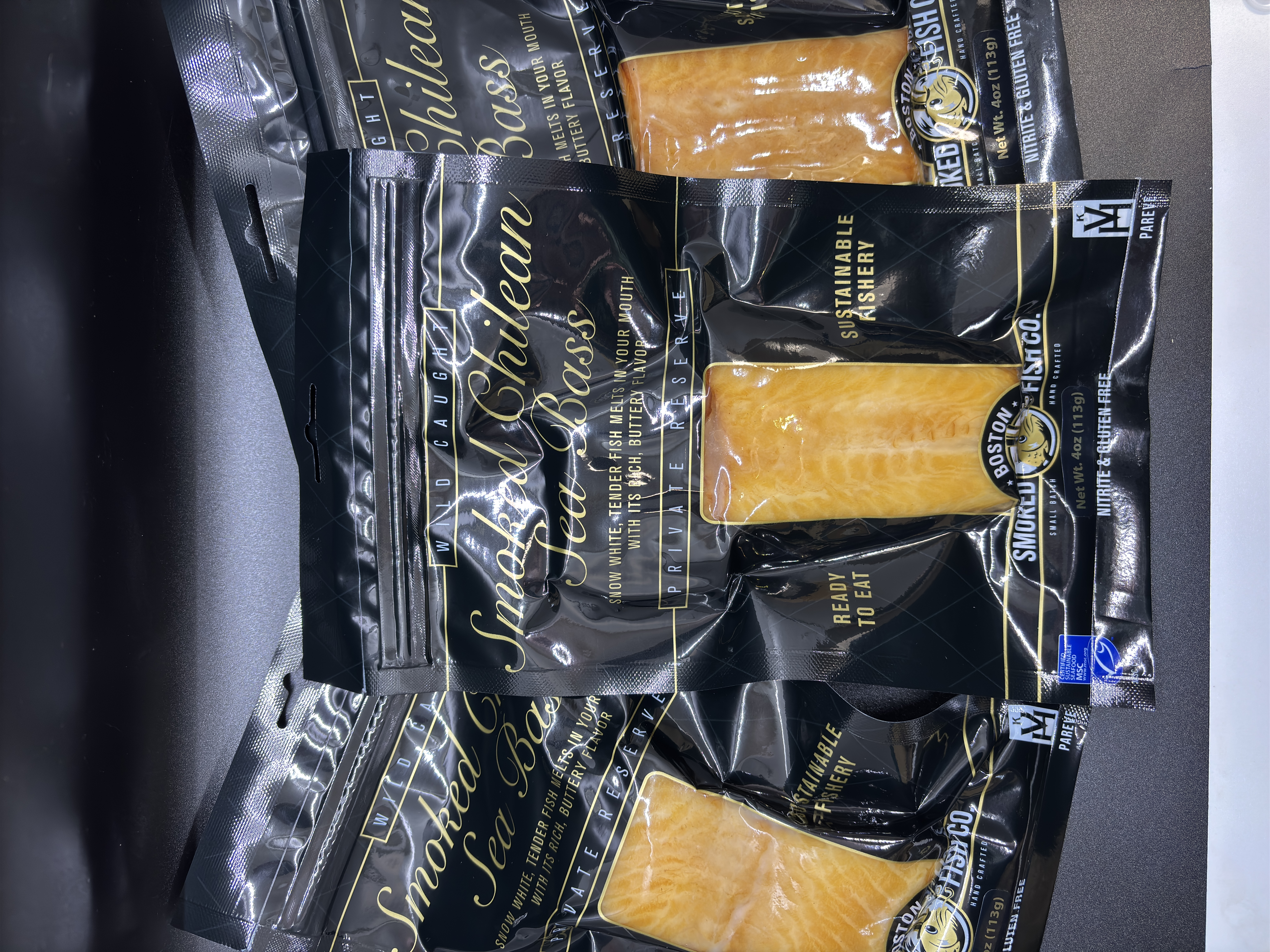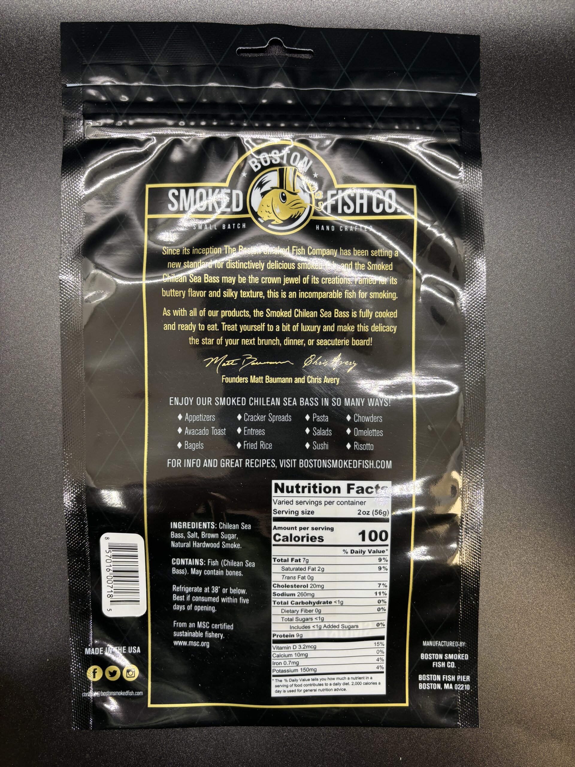 Chilean Sea Bass (salt, brown sugar, and natural hardwood smoke).