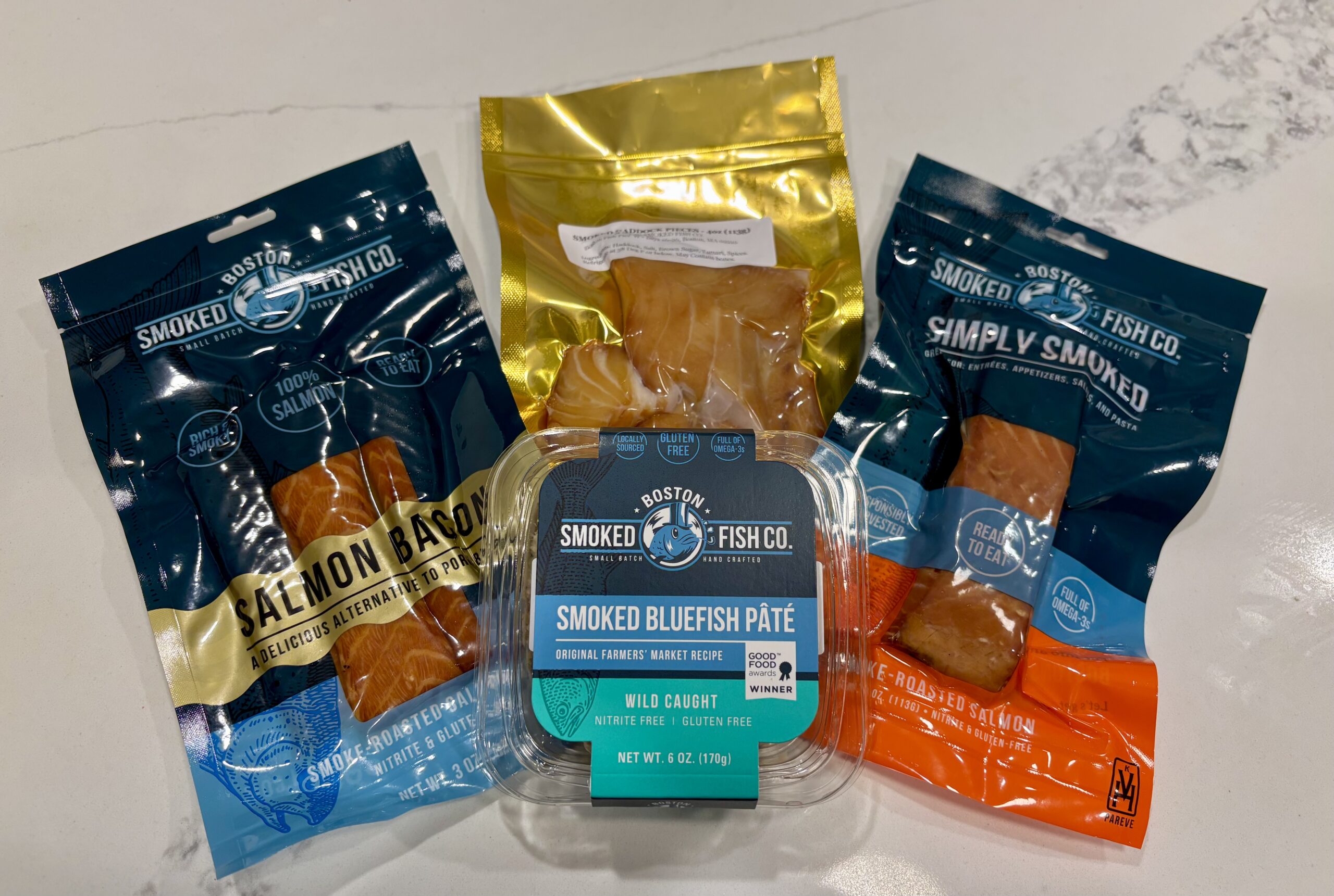 Simply Smoked: Atlantic Salmon (kosher salt, brown sugar, tamari [water, soybeans, salt, sugar]), spices, natural cherry and pecan smoke